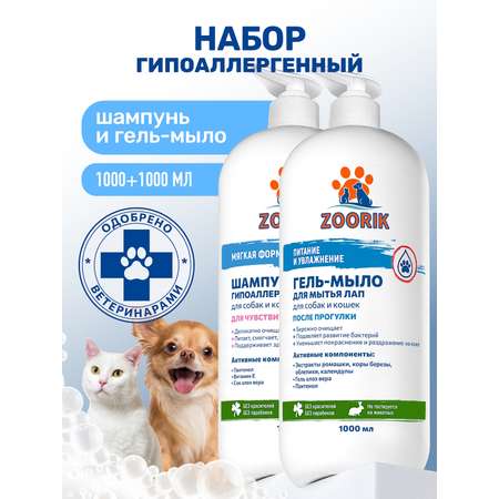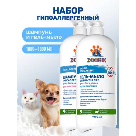Набор шампунь и мыло для лап ZOORIK гипоаллергенный 2*1000 мл