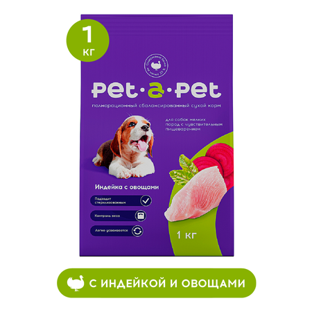 Корм для собак Pet-a-Pet 1кг мелких пород с чувствительным пищеварением с индейкой
