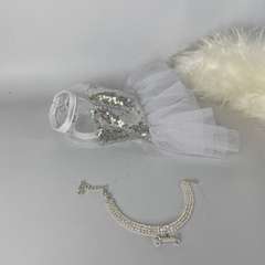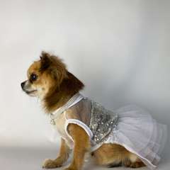 Новогоднее платье для собак и кошек Зоозавр с пышной юбочкой, расшитое серебристыми пайетками.