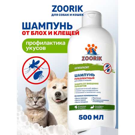 Цена Шампунь ZOORIK для собак и кошек репеллентный антипаразит 500 мл - 368 ₽.