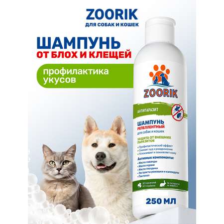 Цена Шампунь ZOORIK для собак и кошек репеллентный антипаразит 250 мл - 354 ₽.