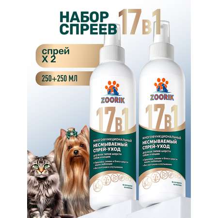 Спрей ZOORIK для собак и кошек многофункциональный 17 в 1 с кератином 250 мл - 2 шт