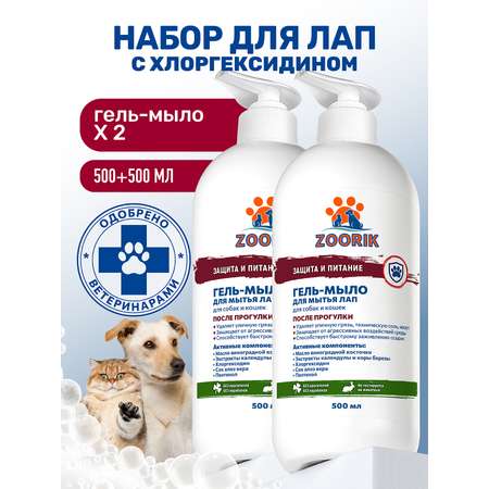 Цена Гель-мыло для мытья лап ZOORIK защита и питание 500 мл - 2 шт - 574 ₽.