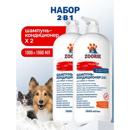 Цена Набор шампунь-кондиционеров ZOORIK для собак и кошек 2 в 1 1000 мл - 2 шт - 898 ₽.