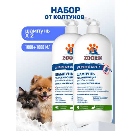 Цена Набор шампуней для длинной шерсти ZOORIK увлажняющих 1000 мл - 2 шт - 1180 ₽.
