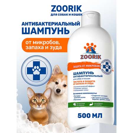 Цена Шампунь для собак и кошек ZOORIK антибактериальный защита от микробов с экстрактом золотой сосны 500 мл - 315 ₽.