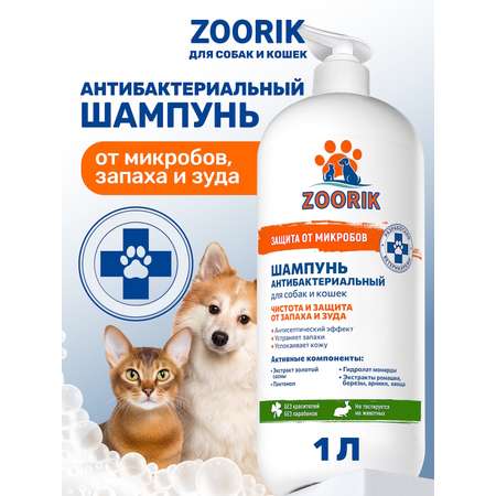 Цена Шампунь для собак и кошек ZOORIK антибактериальный защита от микробов с экстрактом золотой сосны 1000 мл - 549 ₽.