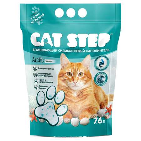Cиликагелевый наполнитель для кошачьего туалета CAT STEP Arctic Breeze моментально впитывает влагу и уничтожает запахи. Пористая структура кристаллов обеспечивает их высокую способность к поглощению жидкостей и запахов. Наполнитель препятствует размножению и развитию бактерий и грибков за счет своего неорганического происхождения. Наполнитель не требует постоянного контроля и ежедневной уборки кошачьего лотка. Содержимого пакета 7,6 л хватает в среднем на 2 месяца использования. Содержит светло-зеленые гранулы c легким ароматом морской свежести, активирующимся при контакте с жидкостью. Заполните сухой и чистый лоток наполнителем CAT STEP Arctic Breeze слоем 3-5 см. Регулярно удаляйте экскременты и перемешивайте наполнитель для равномерного распределения свежих кристаллов. Примерно через 4 недели удалите использованные гранулы и замените их новой порцией наполнителя. Не выбрасывайте использованный наполнитель в унитаз. Объем: 7,6 л.