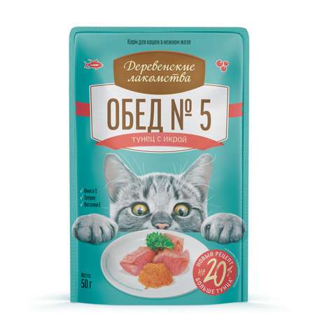 Корм для кошек Деревенские лакомства 50г тунец с икрой пауч