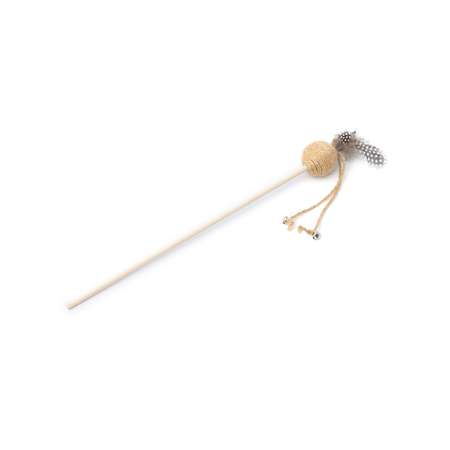 Дразнилка для кошек Barbaks джутовый шарик с пером и бубенчиком 40см