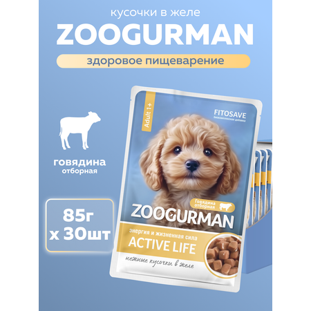 Полнорационный влажный корм ZOOGURMAN для собак в паучах это вкусные мясные кусочки, полные настоящего мяса. Подходит для ежедневного кормления всех взрослых собак от 1 года.