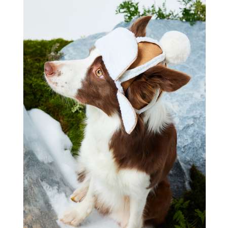 Шапка-ушанка для собак и кошек Зоозавр с помпном. Тёплый и стильный аксессуар для прогулок в холодное время года и фотосессий.