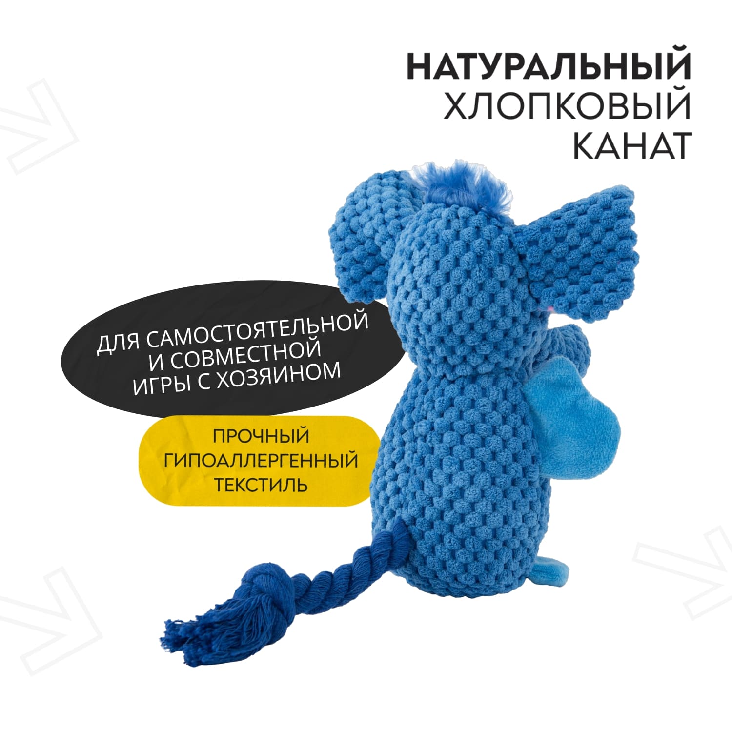 Игрушка Mr.Kranch для собак Слон плюшевая с пищалкой, шуршащими элементами, канатиком и отверстием под лакомство.