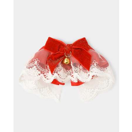Новогодний красный воротничок для собак и кошек Зоозавр. Декорирован белым кружевом и блестящим бантиком с колокольчиком.