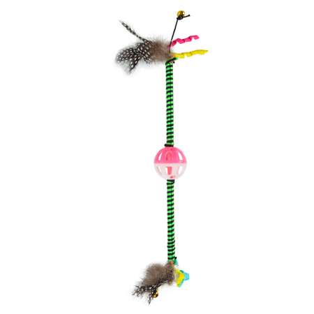 Игрушка для кошек Barbaks Палочка с бубенчиком и натуральными перьями 43*5см