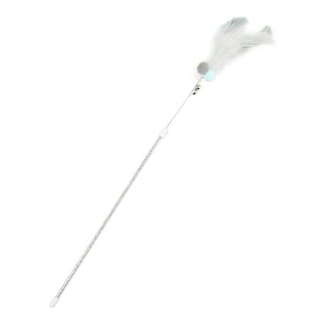 Дразнилка для кошек Barbaks прямая с бубенчиком и натуральными перьями 40см