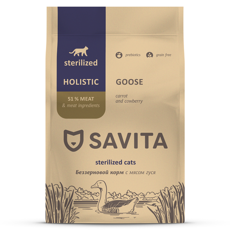 Корм для кошек SAVITA для стерилизованных сухой беззерновой с мясом гуся 400г