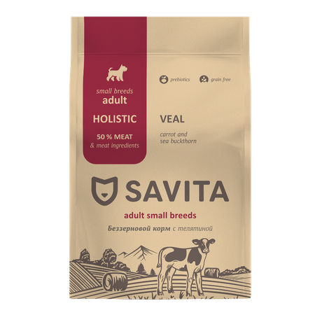 Корм для собак малых пород SAVITA Grain free adult mini veal беззерновой с телятиной 1кг