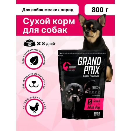 Сухой корм для взрослых собак мелких пород GRAND PRIX Small Adult гранпри с курицей 800 г.