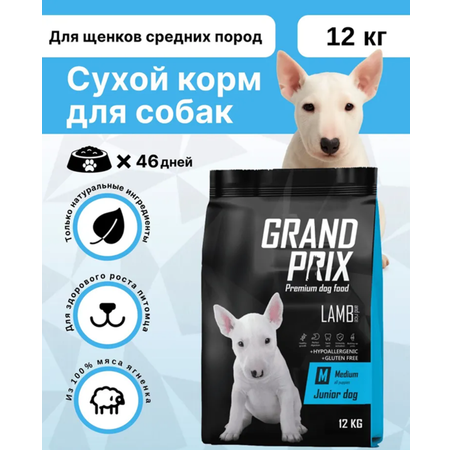 Корм сухой для щенков собак средних пород Grand Prix Medium Junior с ягненком, 12 кг