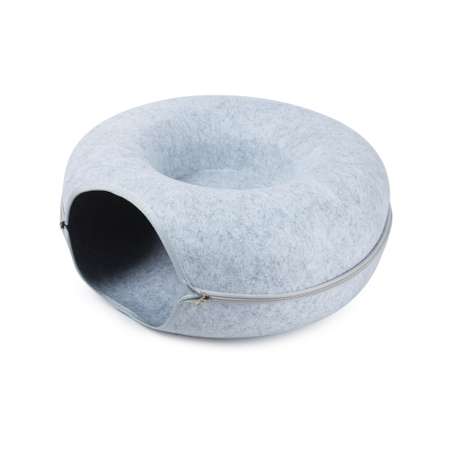 Игровой домик-тоннель Barbaks «Круговорот» в виде пончика станет центром притяжения для вашей кошки. Изделие из мягкого войлока размером 43 х 39 х 42 см представляет собой круг, внутри которого питомец может с комфортом перемещаться, играть в прятки или отдыхать. «Пончик» по периметру застегивается на молнию — его можно в любой момент раскрыть, чтобы достать питомца или почистить поверхности. Верхняя сторона снабжена выемкой, в которой кошка сможет уютно устроиться и поспать. Благодаря этой игрушке у вашего любимца появится бесконечное пространство для весёлых игр и манёвров. А войлочная поверхность домика еще и сможет служить местом для точения когтей.