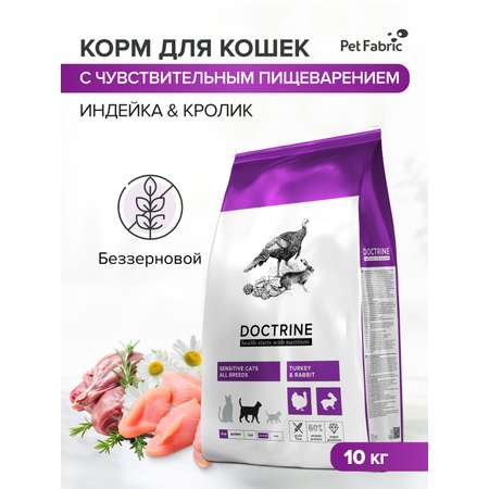Корм для кошек DOCTRINE сухой для чувствительного пищеварения с индейкой и кроликом 10 кг