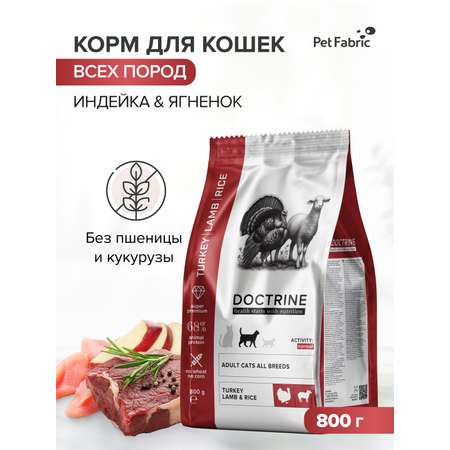Корм для кошек DOCTRINE сухой с индейкой ягненком и рисом 800 г