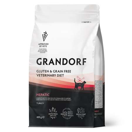 Цена Корм для кошек Grandorf для поддержания функции печени при ХПН 400г - 1050 ₽.