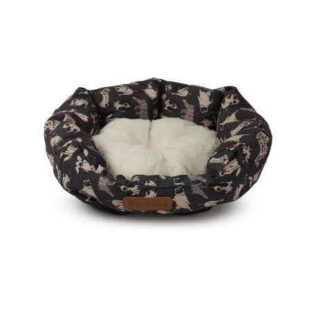 Нижняя поверхность снабжена рельефным нескользящим покрытием — питомец сможет удобно и безопасно забираться внутрь и выбираться наружу. Нейтральный дизайн лежанки с принтом, изображающим собак разных пород, гармонично впишется в интерьер любой комнаты.
