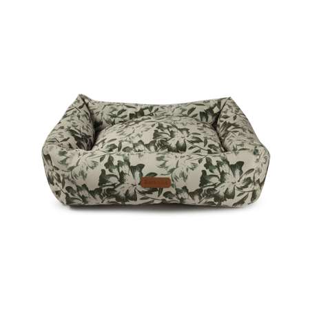Нижняя поверхность снабжена рельефным нескользящим покрытием — питомец сможет удобно и безопасно забираться внутрь и выбираться наружу. Нейтральный дизайн лежанки с принтом в виде листьев гармонично впишется в интерьер любой комнаты.