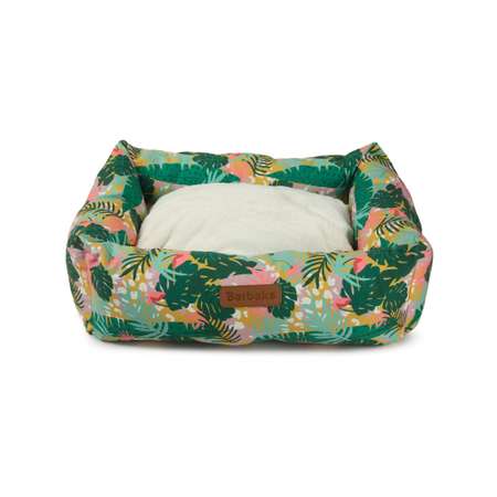 Нижняя поверхность снабжена рельефным нескользящим покрытием — питомец сможет удобно и безопасно забираться внутрь и выбираться наружу. Яркий дизайн лежанки с принтом в виде листьев и цветов станет акцентом в интерьере любой комнаты.