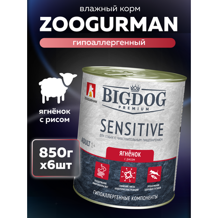 Корм влажный Зоогурман BIG DOG Premium SENSITIVE, с Ягнёнком и рисом, 850 г х 6шт.