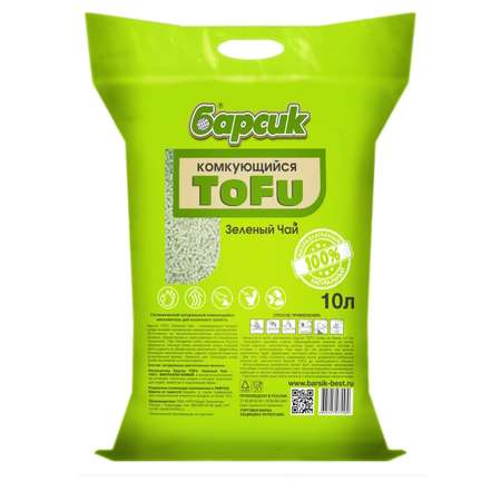 Наполнитель Барсик Tofu Зеленый чай 10 л комкующийся, растительный