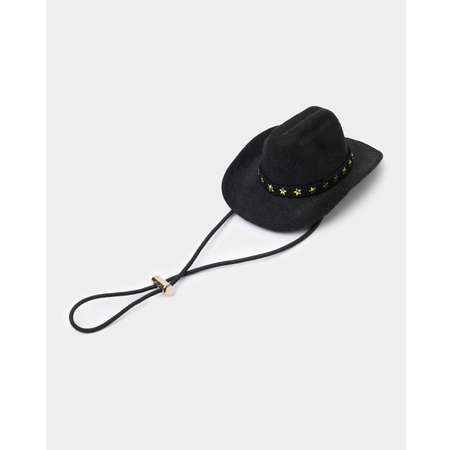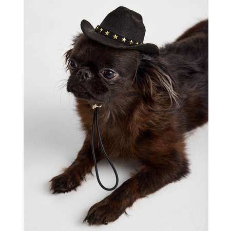 Текстильная шляпа для собак и кошек Зоозавр в чёрном цвете с декором из золотистых звёздочек.