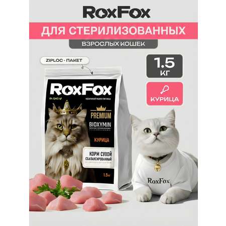 Корм сухой полнорационный для стерилизованных кошек с курицей 1,5 кг RoxFox