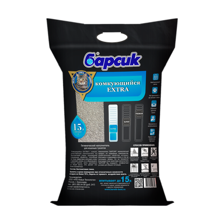 Барсик "EXTRA" 10л -комкующийся наполнитель из бентонитовой глины, прошедшей специальную обработку, способный не только эффективно впитывать влагу и удерживать запахи, но и образовывать плотные комочки, легко удаляемые из общей массы, что делает его более экономичным.