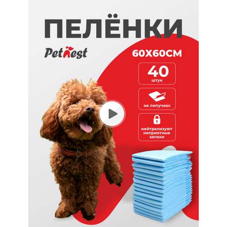 Пеленки для животных одноразовые PetNest 60x60 см. 40 шт. Непромокаемые пеленки для собак и кошек