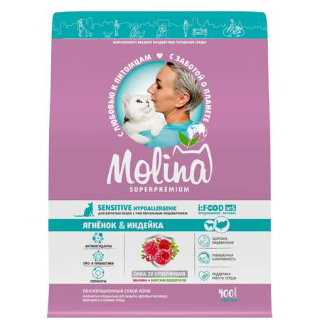 Корм для кошек Molina чувствительное пищеварение с ягненком и индейкой 400г