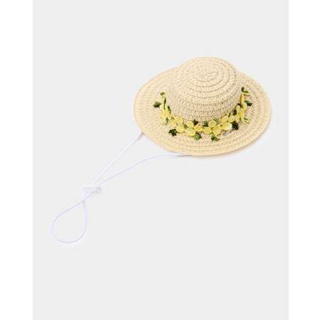 Соломенная шляпа для собак Зоозавр, украшенная цветной объёмной вышивкой. Стильный аксессуар для фотосессий и прогулок, который подчеркнёт индивидуальность вашего питомца.