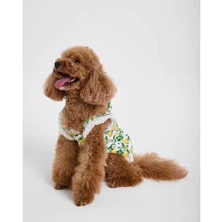 Очаровательный сарафан для собак и кошек Зоозавр с лимонным принтом. Декорирован оборками со сквозным узором.