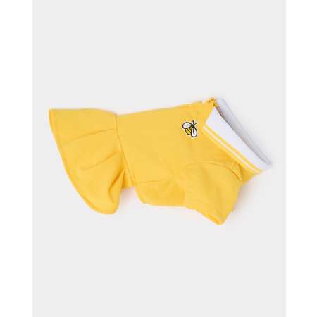 Текстильное платье-поло для собак и кошек Зоозавр в жёлтом цвете. Декорировано с двух сторон вышивкой.
