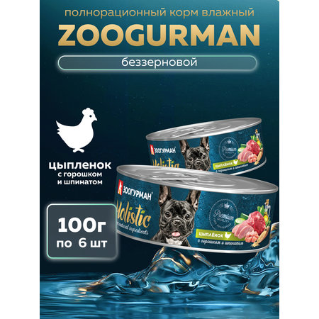 Корм влажный Зоогурман HOLISTIC Цыпленок с горошком и шпинатом, 100 г х 6 шт.
