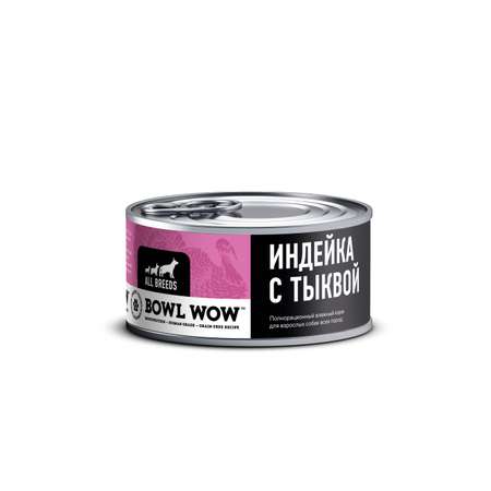 Цена Полнорационный влажный корм BOWL WOW для взрослых собак всех пород с индейкой и тыквой 100г - 185 ₽.