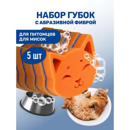 Набор губок для мытья животных ZOORIK с абразивной фиброй кошка 5 шт
