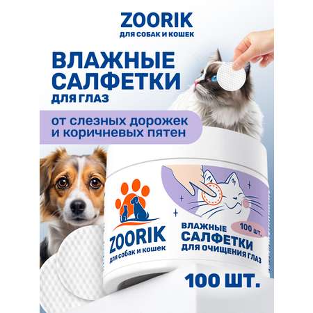 Цена Влажные салфетки ZOORIK для глаз собак и кошек 100 шт - 298 ₽.