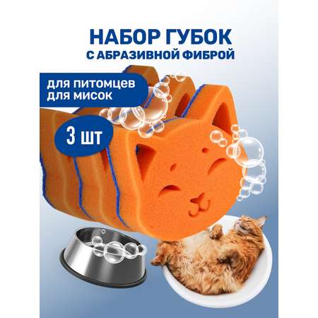 Набор губок для мытья животных ZOORIK с абразивной фиброй кошка 3 шт