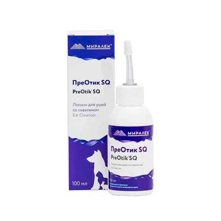 Лосьон для ушей кошек и собак ПреОтик SQ Миралек, 100 мл – это эффективное средство по уходу за вашими питомцами, созданное для бережной чистки и предотвращения различных проблем с ушами.