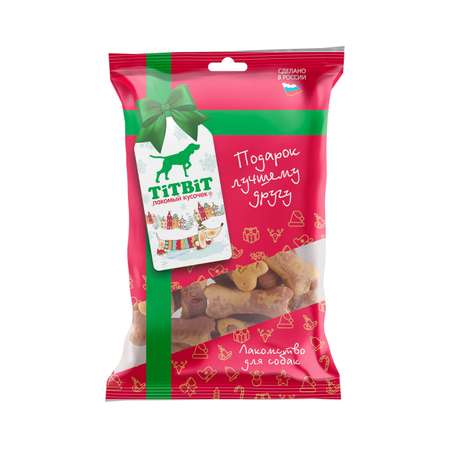 Печенье косточки для собак TITBIT двухцветные Новогодняя коллекция 130г