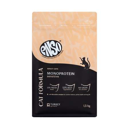 Корм сухой полнорационный для кошек ENSO Cat formula Monoprotein с чувствительным пищеварением со свежей индейкой 1.5кг