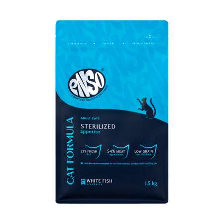 Корм сухой для стерилизованных кошек ENSO Cat formula Sterilized со свежей белой рыбой с добавлением клюквы 1.5кг